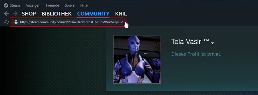 Copy the profile url to your clipboard. On Windows you just need to click on it.