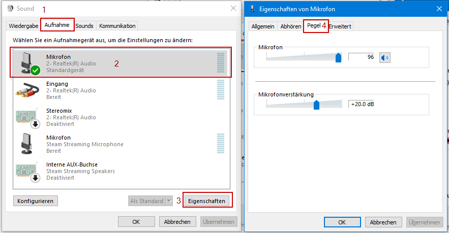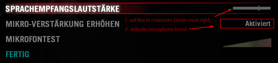 The last screen (4) is, where you have to find a suitable combination of recording volume and microphone boost for.